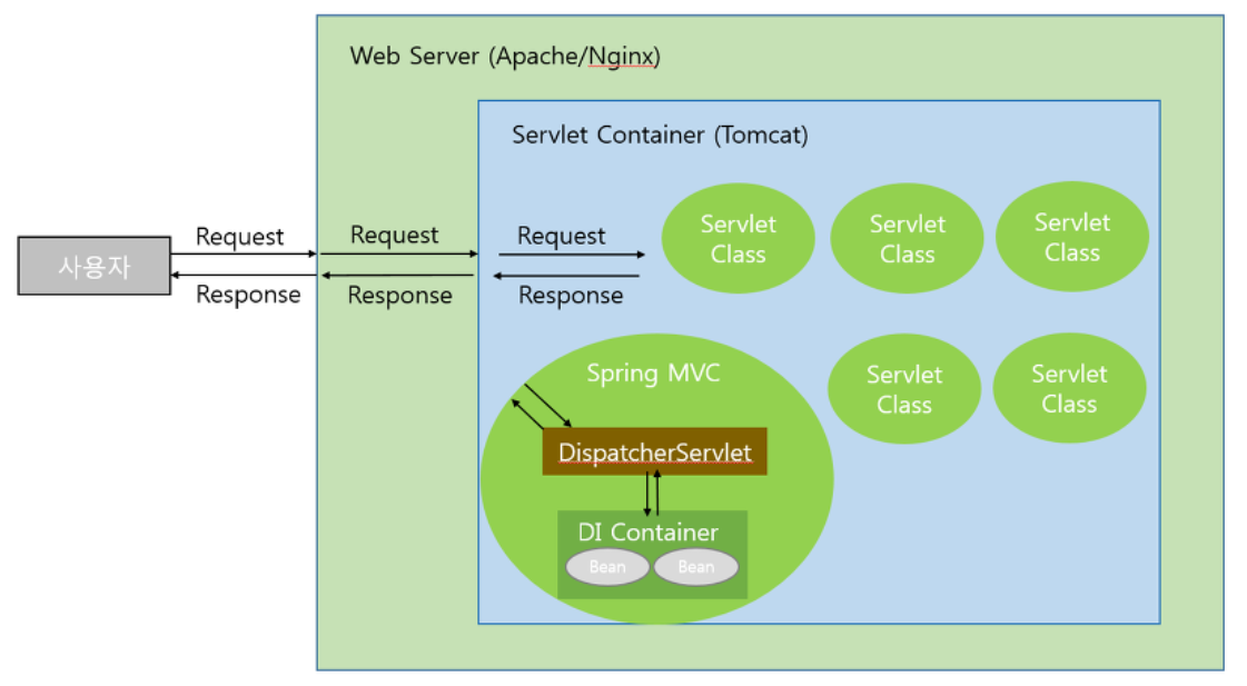 | 통신 지원 | - 클라이언트의 request를 받아주고 response를 보낼 수 있도록 web server와 socket을 만들어 통신을 해준다. socket을 만들고, 특정 port를 리스닝하고, 연결 요청이 들어오면 스트림을 생성해서 요청 받는 일을 대신 해주는 것이다. - listen, accept 등의 기능을 API로 제공하기 때문에 복잡한 과정을 생략할 수 있다. |