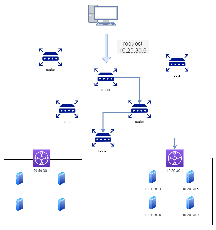 - 전달 받은 IP 주소가 목적지인 것은 알지만 경로는 알지 못한다. 이 때 네트워크 장비인 라우터가 경로를 지정해주는 역할을 수행한다.