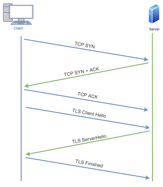 - HTTPS 요청의 경우 암호화 통신을 위한 TLS 핸드쉐이킹이 추가된다. 이를 통해 서버와 클라이언트의 암호화 통신이 가능하게 된다.
