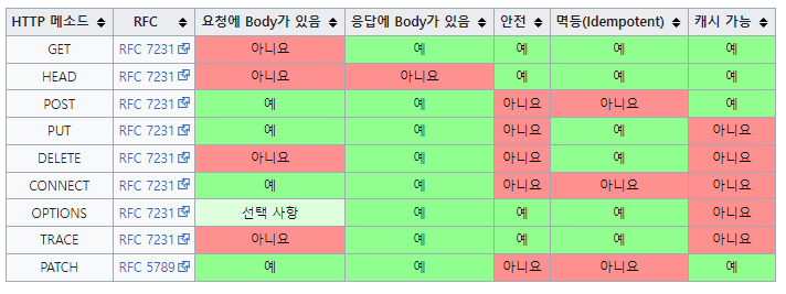 | PATCH | - 리소스를 부분적으로 변경한다. - PUT과 달리, 변경할 값만 보내면 된다. |