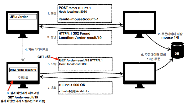 - POST로 주문 후에 주문 결과 화면을 GET 메서드로 리다이렉트 한다.