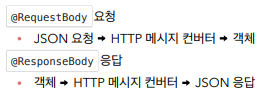 - HTTP Request Body의 JSON, XML, Text 등의 데이터를 적합한 HttpMessageConverter를 통해 파싱하여 Java 객체로 변환한다.